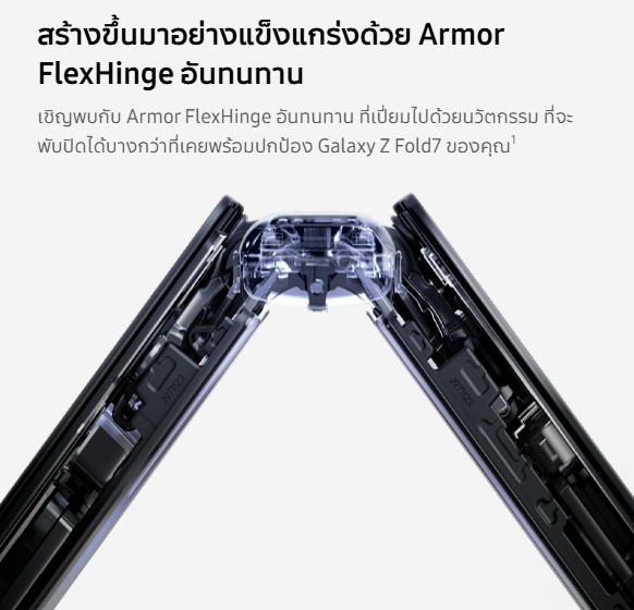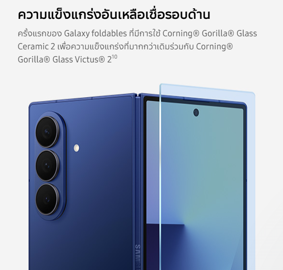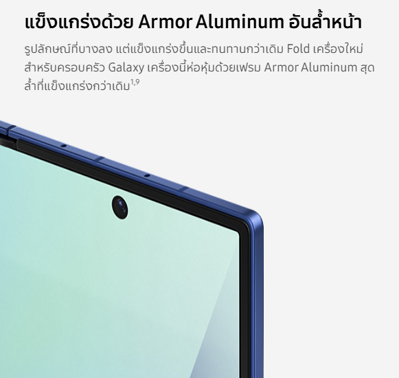 เชิญพบกับ Galaxy Z Fold 7 พบกับดีไซน์ที่เป็นนวัตกรรมที่สุดของเรา ที่ออกแบบขึ้นมาใหม่ เพื่อให้เป็น Fold ที่บางและเบาที่สุด เท่าที่เราเคยมีมา ด้วย หน้าจอขนาดใหญ่ ทั้งภายในและภายนอกที่จะทำให้คุณ รับชมได้ถึงโลกแห่งงานฝีมืออันไร้ที่ติโฉมใหม่แล้ว สมาร์ตโฟนเครื่องนี้จึงเป็นประสบการณ์ระดับ Ultra ที่รอให้คุณพลิกเปิด หน้าจอที่ใหญ่ที่สุดในสมาร์ทโฟน Galaxyไม่ว่าจะพับเครื่องหรือกางออกก็ตาม Galaxy Z Fold7 จะเป็นสมาร์ตโฟนที่เกินความคาดหมายสำหรับคุณ ด้วยหน้าจอด้านนอกขนาด 21:9 ที่ใหญ่กว่าเดิมและรูปลักษณ์ที่ล้ำกว่าเดิม คุณจะสามารถจับถือและพิมพ์ได้ง่ายกว่าเดิม จนคุณสามารถทำสิ่งต่าง ๆ ให้สำเร็จได้อย่างสะดวกสบาย Samsung Galaxy Z Fold 7 มี 3 สีหลักคือ Blue Shadow (น้ำเงิน), Jet Black (ดำ) และ Silver Shadow (เงิน) โดยมีสีพิเศษ Mint (มิ้นต์) สำหรับสั่งซื้อออนไลน์เฉพาะที่เว็บไซต์ Samsung เท่านั้น และมีรุ่น FE สีดำกับขาวด้วย ORDER NOW เตรียมพบกับกล้อง Ultra 200 MP บันทึก ภาพความละเอียดสูงที่น่าทึ่งสุด ๆ ได้อย่างง่ายดาย ด้วย กล้อง 200 MP อันทรงพลัง ของเรา ที่เข้าคู่กับ ProVisual Engine ได้อย่างลงตัว กล้อง 200 MP Ultra ที่เพิ่งเพิ่มเข้ามาใหม่ใน Galaxy Z Fold Series ของเรานั้นช่วยทําให้ช่วงเวลาในชีวิตประจําวันดูเต็มอิ่มในทุกรายละเอียดและมีชีวิตชีวาได้อย่างเป็นธรรมชาติ ไม่ว่าจะเป็นภาพพอตเทรตที่มี โทนสีผิวเหมือนจริง ไปจนถึงภาพทิวทัศน์ที่เต็มไปด้วยสีสันสมจริงก็ตาม ProVisual Engine ระดับเน็กซ์เจนจะช่วยปรับทุกเฟรมให้ดูคมชัดได้อย่างแน่นอน จากนั้นก็เติมชีวิตชีวาให้กับภาพได้ด้วยหน้าจอหลักอันกว้างใหญ่ของ Fold ที่ภาพถ่ายของคุณจะดูสมจริงราวกับได้สัมผัสกับช่วงเวลาจริง ๆ